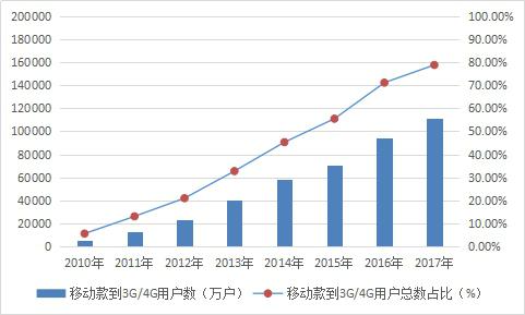 2010-2017年3G/4G用戶發(fā)展情況