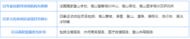 (2)沙木尼擁有完善的休閑產(chǎn)業(yè)鏈配套。向?qū)Х?wù)上,專業(yè)的向?qū)Ч緭碛谐^150名注冊職業(yè)登山向?qū)В転橛慰吞峁┥衬灸岬貐^(qū)的全方位攀登、滑雪服務(wù);住宿服務(wù)上,星級酒店、青年旅舍、家庭旅館、公寓、露營營地共有50余家,并有房屋租賃、度假中心等物業(yè)接待服務(wù)。商業(yè)服務(wù)上,共有登山、滑雪及紀(jì)念品等40余家體育用品商店,有提供沙木尼傳統(tǒng)美食和西式休閑美食的餐飲娛樂服務(wù);醫(yī)療服務(wù)上,形成“急診+醫(yī)院+研究中心”的綜合醫(yī)療服務(wù)體系,如:夏蒙尼醫(yī)院、高原生態(tài)系統(tǒng)研究中心、山地醫(yī)學(xué)培訓(xùn)與研究所;觀光交通上,纜車道于1955年正式啟用,將海拔1035米的沙木尼和海拔3842米的南針峰連接起來,不但可使游客領(lǐng)略到冰雪風(fēng)景,更為登山者和滑雪者帶來了極大便捷。