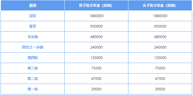 溫網(wǎng)單打獎金表