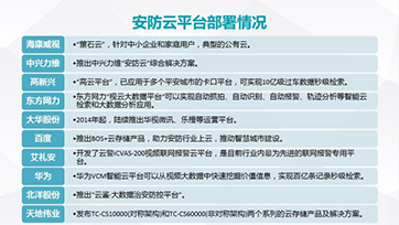 當前平安城市和智慧城市的建設中,智能化分析已經(jīng)得以大量應用,大量實例證明智能化分析在城市視頻監(jiān)控中的必要性。但目前安防,智能化不足是安防行業(yè)的主要頑疾之一,更加智能化將是未來發(fā)展方向和創(chuàng)新點。 另一方面,平安城市和智慧城市建設的重心已經(jīng)從前端的攝像頭等硬件設備向后端聯(lián)網(wǎng)平臺系統(tǒng)轉(zhuǎn)移。未來云平臺將成為安防企業(yè)競爭的核心。多家企業(yè)已開始布局安放云平臺通過云平臺可以引申出一系列配套的產(chǎn)品、服務和解決方案,未來平臺建設能力較強的廠商可通過將平臺免費提供給用戶使用,而由于平臺轉(zhuǎn)換成本高,這將大大增加用戶的使用粘性。