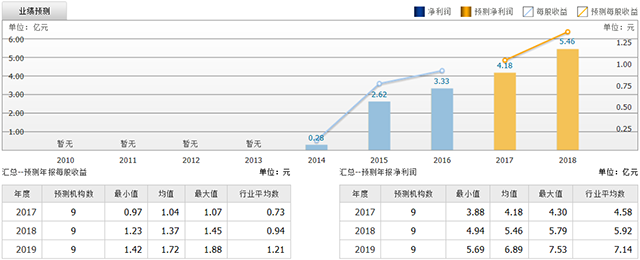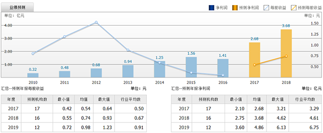 截至2017年7月17日,6個(gè)月以內(nèi)共有 17 家機(jī)構(gòu)對泰格醫(yī)藥的2017年度業(yè)績作出預(yù)測;預(yù)測2017年每股收益 0.54 元,較去年同比增長 80%,預(yù)測2017年凈利潤 2.68 億元,較去年同比增長 90.4% 。