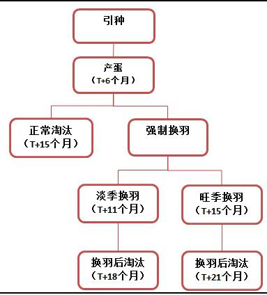 1)祖代1日齡引種,到24周進(jìn)入產(chǎn)蛋周期,再經(jīng)過3周孵化,產(chǎn)出第一套父母代;