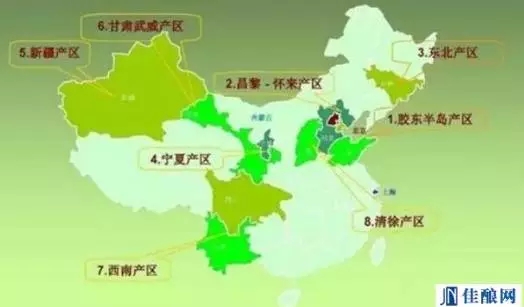 中國(guó)的9大葡萄酒地區(qū),分別為東北、河北昌黎、膠東半島、河北懷涿盆地、山西清徐、新疆、甘肅武威、寧夏賀蘭山東部以及西南地區(qū),九個(gè)產(chǎn)區(qū)的葡萄表現(xiàn)也獨(dú)具風(fēng)格。