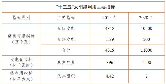光伏發(fā)電成本持續(xù)降低。到2020年,光伏發(fā)電電價水平在2015年基礎上下降50%以上,在用電側(cè)實現(xiàn)平價上網(wǎng)目標;太陽能熱發(fā)電成本低于0.8元/千瓦時;太陽能供暖、工業(yè)供熱具有市場競爭力。